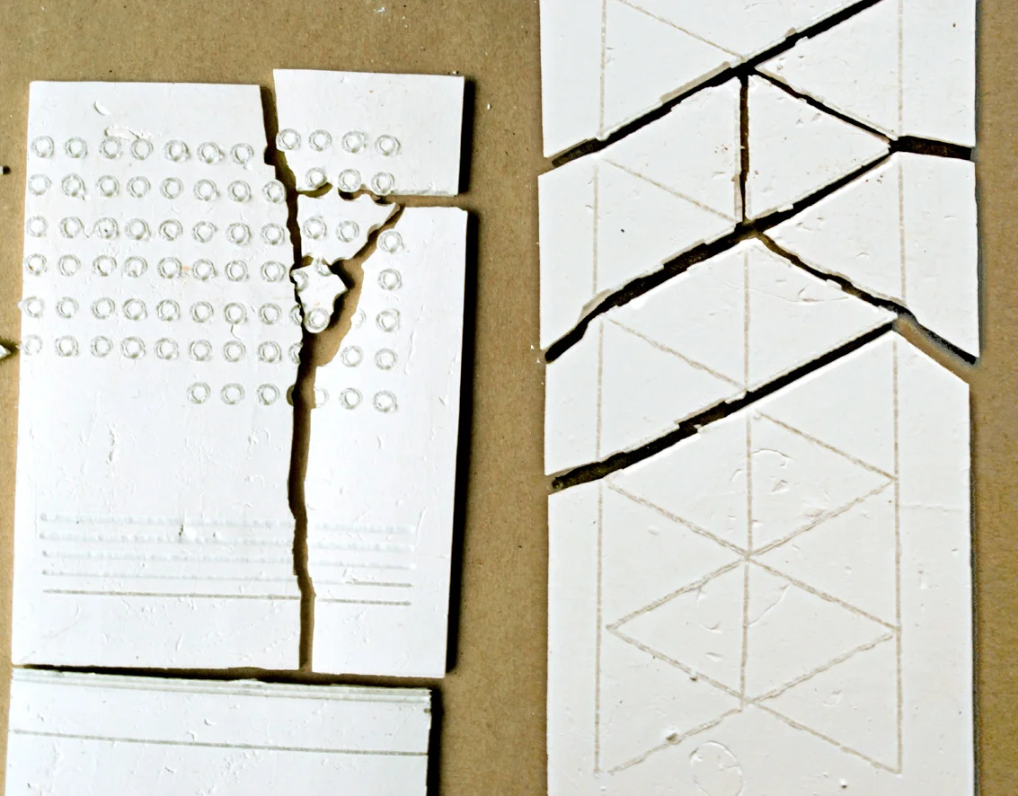 Experiments in porcelain/ Damaged porcelain is considered inferior. I wanted to create porcelain which obtains its real quality - its character - through breaking. I conducted several experiments with breaking, perforating and predetermined breaking points. By using laser technology I could create glassy, sometimes almost translucent, parts in the material. Beside being aesthetically appealing these glassy structures function as predetermined breaking points.