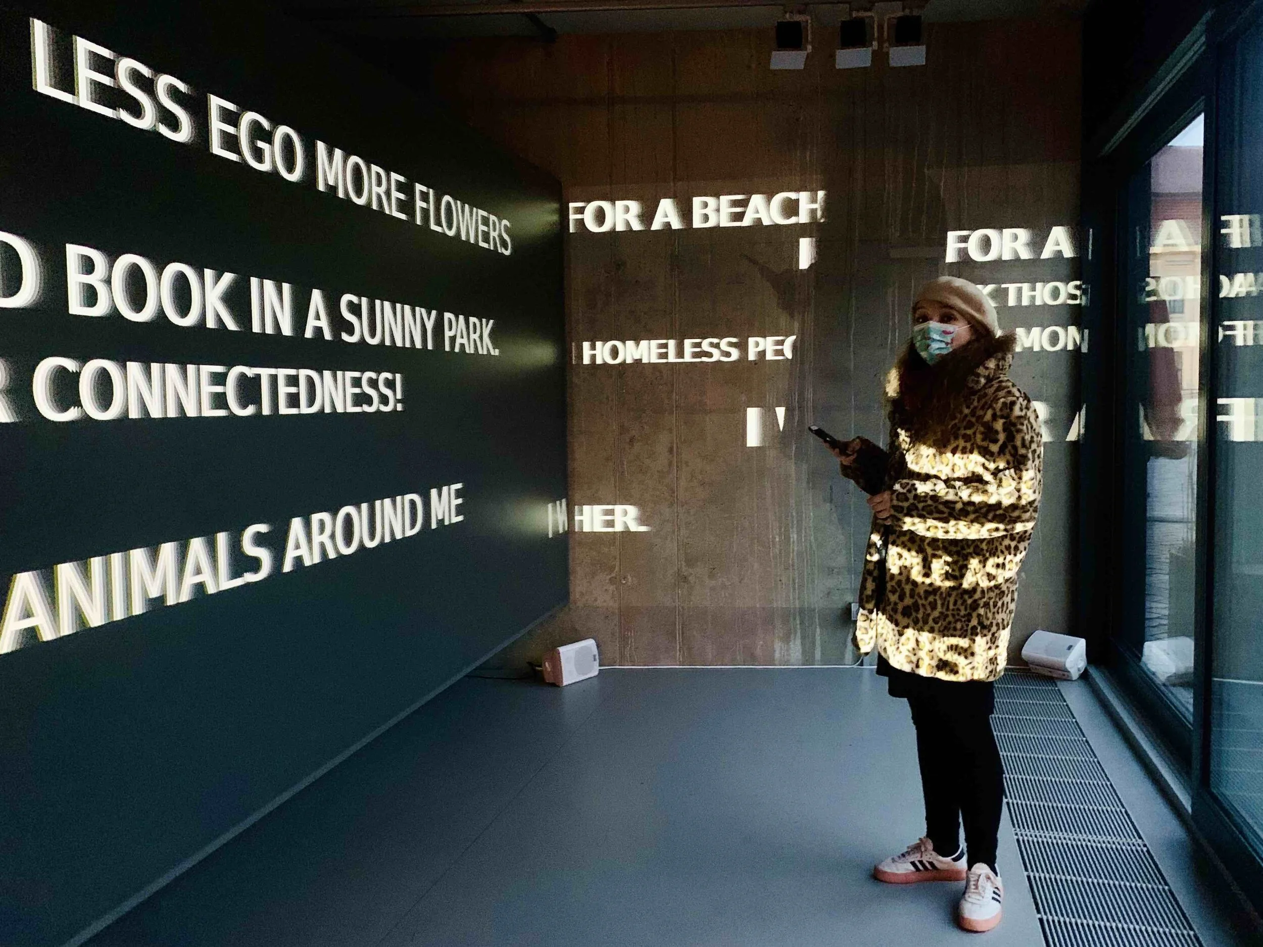 Then the wishes are launched into the physical space where they are projected onto the walls and interact dynamically with one another. Guests close to the physical location of WfQ — be it festival visitors or passers-by when set-up in public space — can visit the installation in person, send live wishes via their smartphone and enter the physical space and immerse themselves in the projections and listen to the recorded wishes from near and far. In order to meet COVID safety guidelines, those visitors can book a slot on the website to visit the installation alone or with their viral partners. Those not physically on-site can watch the exhibit via the live online video stream.